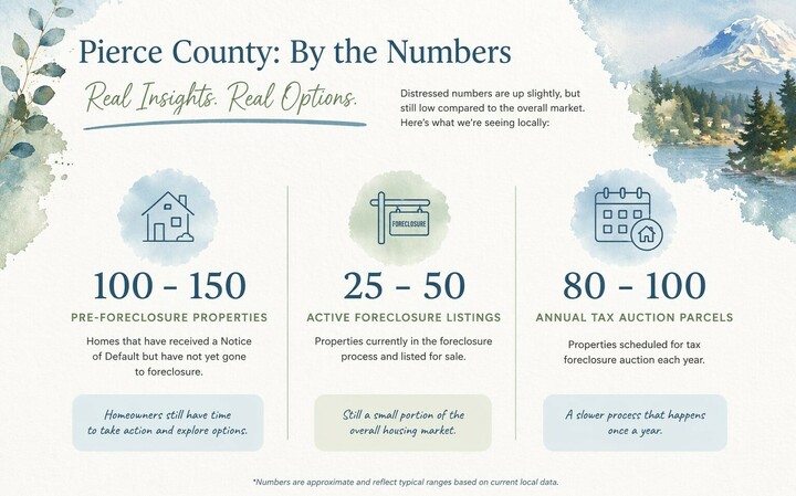 While there has been a modest increase in pre-foreclosure activity across Pierce County, the overall numbers remain relatively low compared to the full housing market. These properties represent a small portion of total inventory, and most homeowners in this stage still have time and options available. The key is understanding what these numbers actually mean—and knowing that early action can make a significant difference.